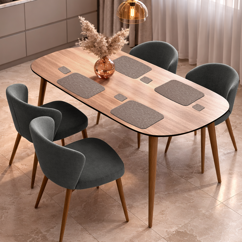 Manufactured using HPL Compact Laminate , these mats and coasters feature a non-porous, moisture-resistant surface that protects tables from heat, spills, stains, and scratches. The rectangular shape offers generous coverage, making it ideal for formal dining layouts, café tables, and hospitality environments where functionality meets design.