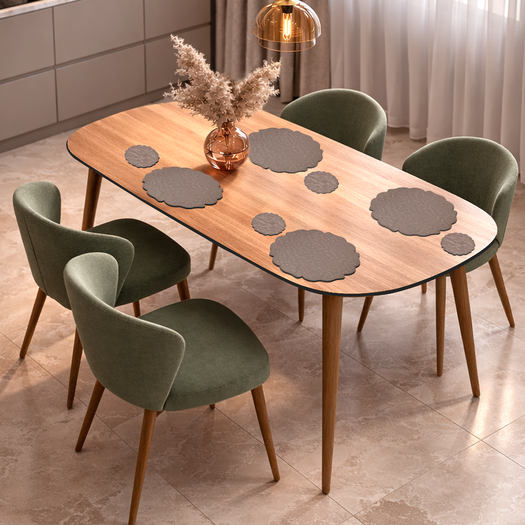 The Petal Rim Round Table Mats & Coasters are designed to bring organic softness and visual elegance to dining spaces. Featuring a gently scalloped, petal-like edge, this design adds character and warmth to round table settings while maintaining a refined, contemporary look.